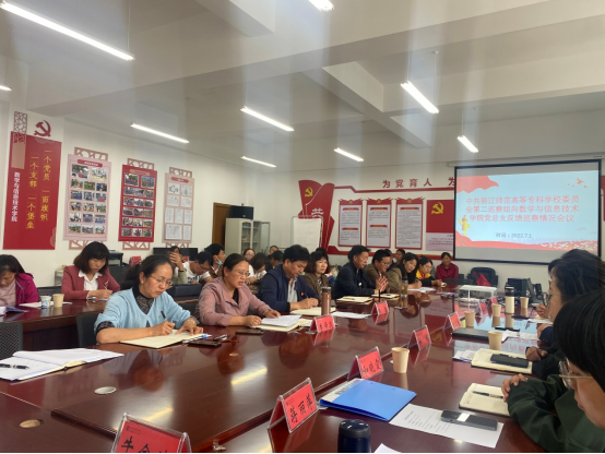 校党委巡察工作领导小组成员杨文良、学校二届党委第四轮巡察巡察组组长和梅副组长段传虎联络员和晓霞成员蒋丽萍牛金城;数学与信息技术学院全体教职工出席会议。