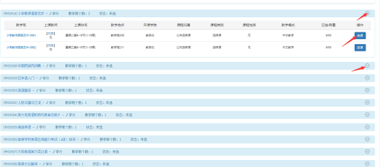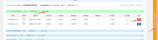 5.确认选课状态,选课成功后状态显示为“已选”,并可在选课时间内进行退选,可在右侧栏查看已选课程信息。