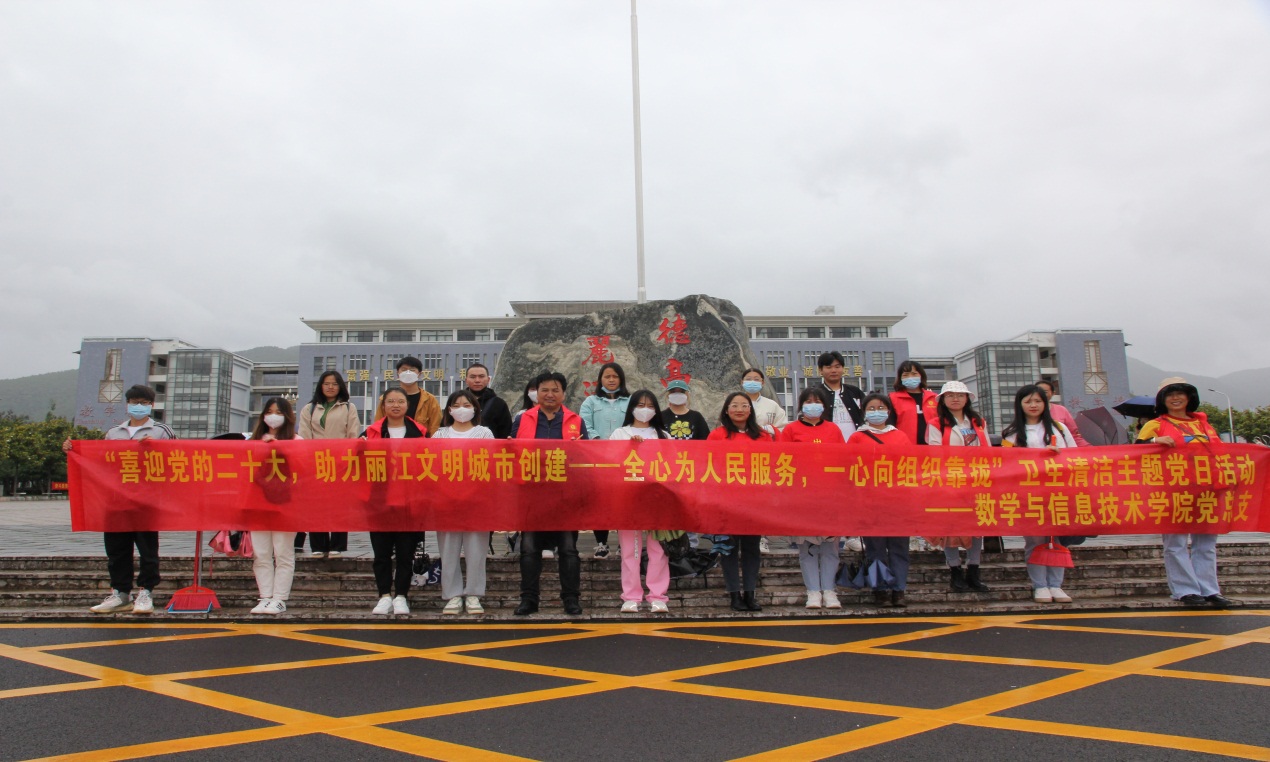 2022年是党的二十大召开之年,是我们党迈向第二个奋斗百年目标的关键之年。百年来,我们党团结带领人民群众进行了大气磅礴、气吞山河的英勇斗争,凝萃了舍生忘我、大公无私、顽强拼搏、艰苦奋斗的红色精神,积淀了默默奉献、不计得失、百折不挠、无畏无惧的红色基因。为赓续中国共产党人的红色血脉,以积极风貌迎接党的二十大,数学与信息技术学院党总支开展了“喜迎党的二十大,助力丽江文明城市创建——全心为人民服务,一心向组织靠拢”卫生清洁主题党日活动。学院21名教师党员和101名入党积极分子参加了本次活动,意在由教师党员在社区卫生清洁工作中发挥先锋模范榜样作用,引导入党积极分子向党组织靠拢。同时也通过党员与入党积极分子的实际行动,为丽江文明城市创建贡献一份薄力。