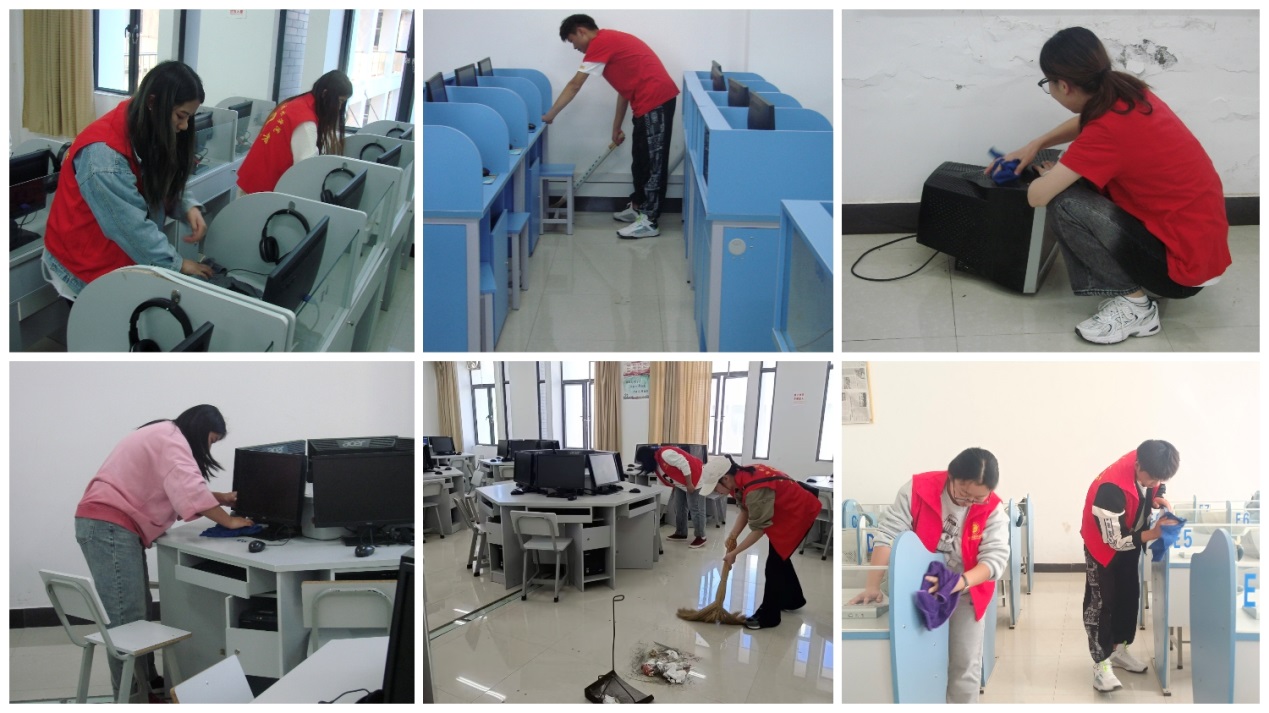 2022年10月28日上午9:00-11:00,10月30日下午17:30-19:30,学生党支部组织在校的60多名入党积极分子积极参与“创建文明校园”活动。主要清扫的区域为理工楼(南)1-5层楼道、机房、实验室,1号理工楼东侧、南侧绿化区,教学楼南面204-218共12间教室。通过同学们两个小时的努力,完成了清扫实验室、教室和机房,清理课桌、讲桌和黑板,清倒垃圾,拖地,擦除楼道、机房和教室等墙壁上不文明涂鸦等工作。