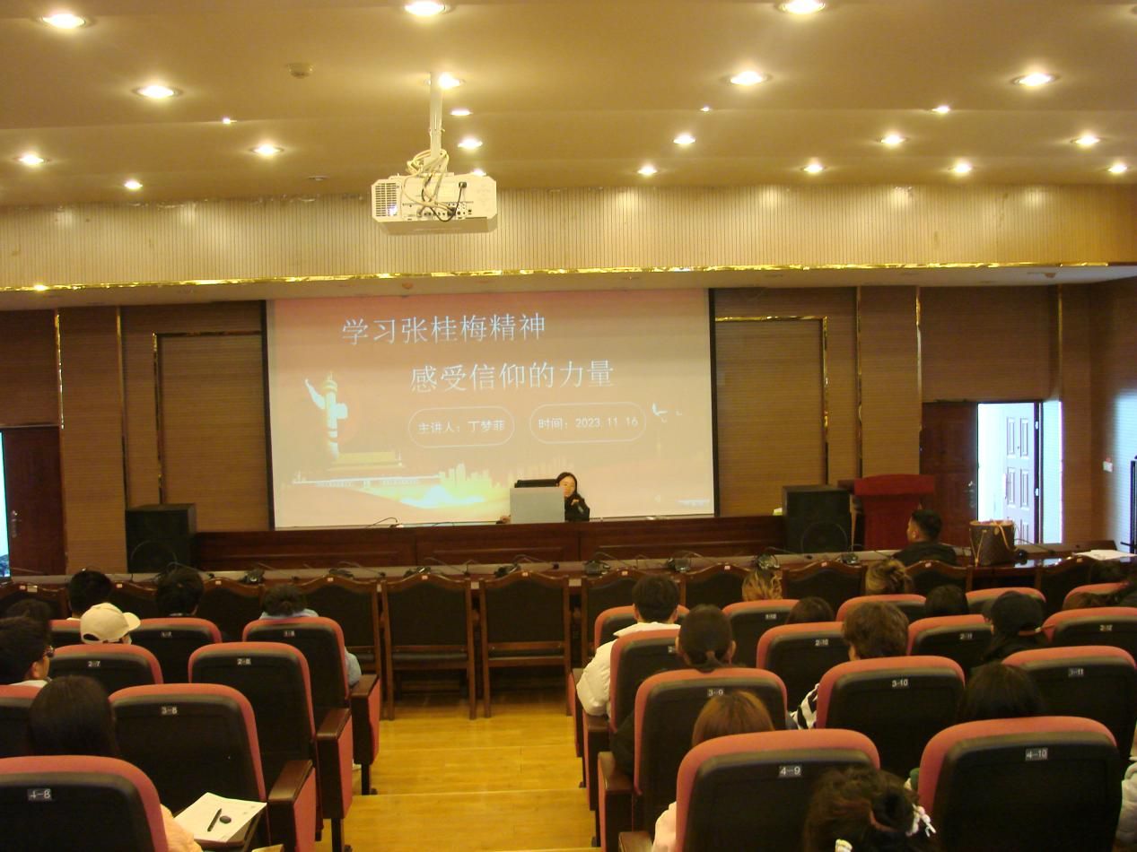 活动中,同志们集体观看了《你好,张桂梅》专题影片;丁梦菲老师以“心中有信仰,脚下有力量”为题,向同志们讲述了到华坪县女子高中支教这一年来与张桂梅老师一起工作和生活的点点滴滴,分享了自己思想成长和进步的经历,学习“张桂梅精神”的感悟,并寄语同志们,努力学好为人民服务的本领,力争成为对社会有用的人。党支部书记何春带领全体同志一起学习《张桂梅》、《我有一个梦想》相关内容;部分同志分享了学习心得,承诺向榜样学习,不忘初心,踔厉奋发,成为对社会有用的时代新人。专职组织员李登天要求同志们认真学习,不断提高政治思想觉悟,争做新时代的好青年。