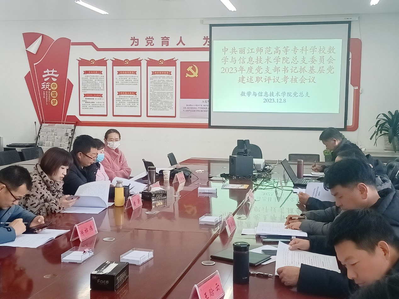 2023年12月8日下午,数学与信息技术学院党总支在理工楼南404召开2023年度党支部书记述职评议会。学院党总支支委、教师支部书记、学生党支部书记、党代表、教职工代表参加会议,学校组织部副部长马国发到会指导工作,会议由党总支书记李学花同志主持。