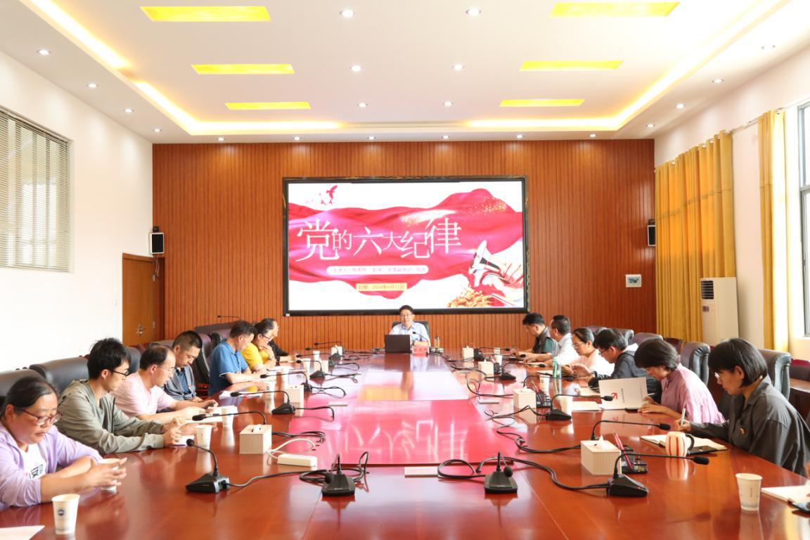 2024年6月12日下午14点30分, 校党委副书记、校长陈本辉同志在校务管理中心第三会议室为数学与信息技术学院党员讲授题为《党的六大纪律》的专题党课。