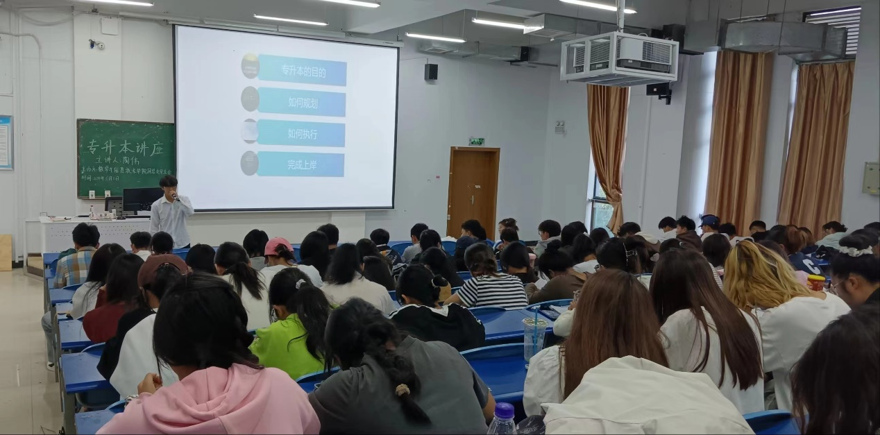 为了帮助学生更好的了解专升本政策,制定个人学习计划,实现学历和能力的双重提升,数学与信息技术学院团总支于2024年6月1日在博学楼331教室为2022级有意专升本的学生举办了“专升本经验交6流讲座”。