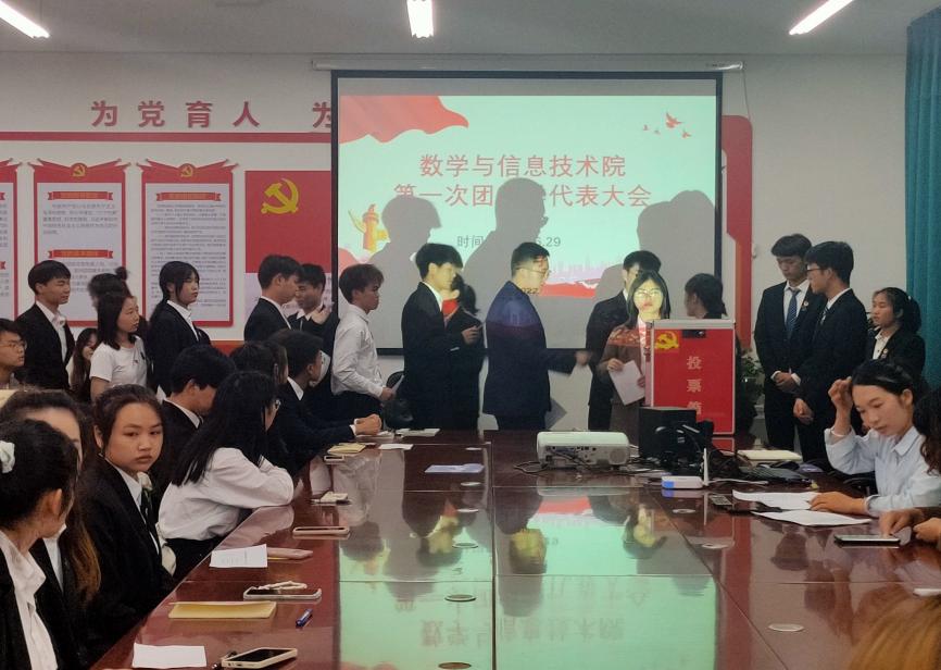 2022年6月29日数学与信息技术学院在南实验楼404召开第一次团员代表大会和学生代表大会。数学与信息技术学院党总支副书记宋春丽、学工办主任和凤珍、学生党支部书记何春、团总支书记蒋永泉及学院团员代表和学生代表参会。