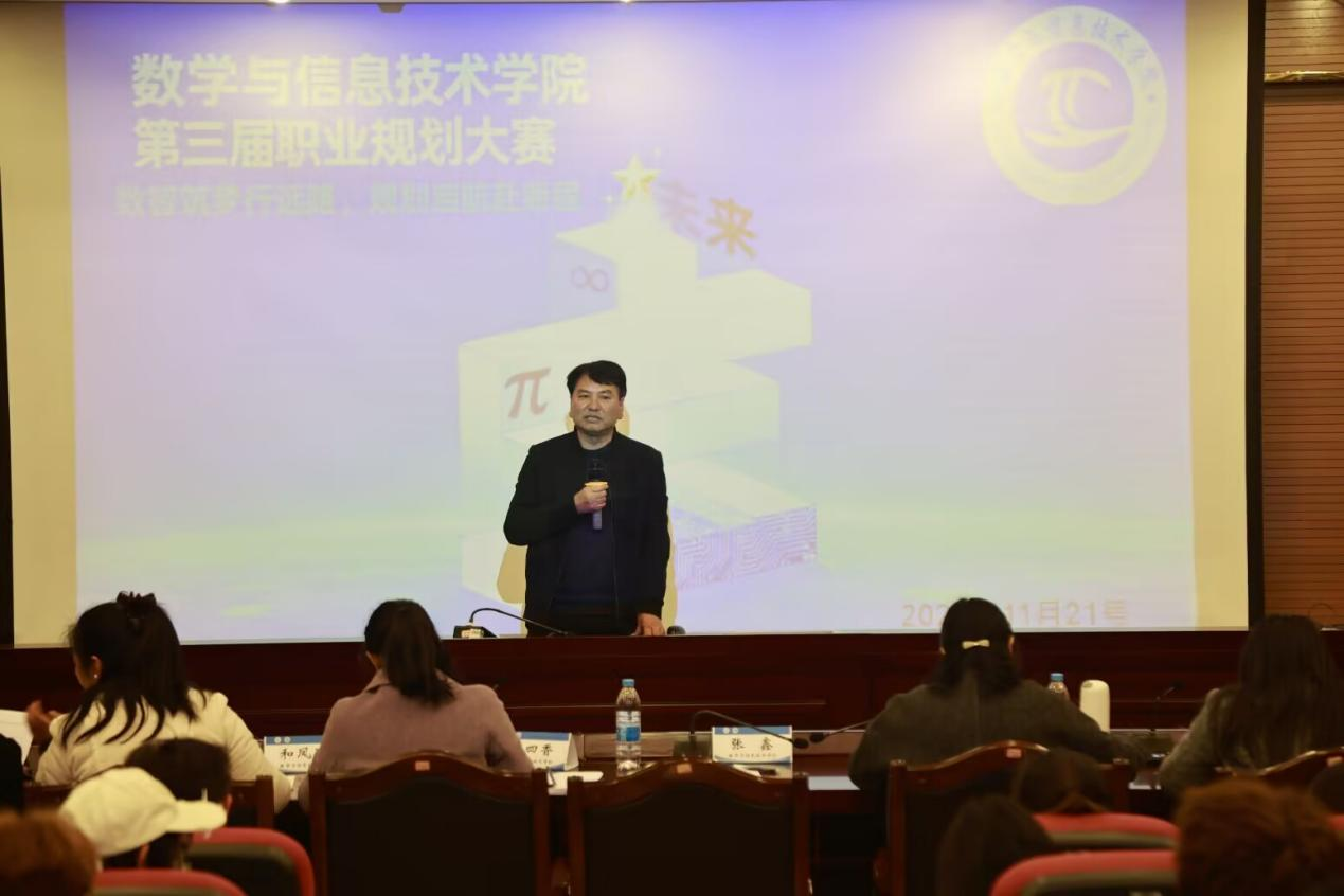 为提升大学生职业规划意识、确立职业生涯发展目标、增强就业竞争力,数学与信息技术学院于11月21日下午在求是楼318隆重举行了大学生职业规划大赛院级决赛。学院院长张鑫亲临现场并发表讲话,副院长杨四香、学工办主任和凤珍、张俞玲教授等九位资深教师共同担任此次比赛的评委。