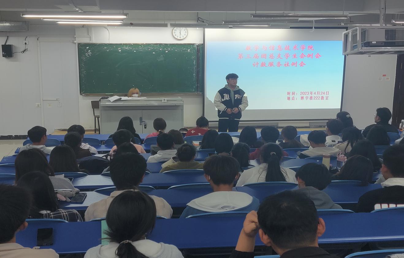 数学与信息技术学院团总支于4月24日下午17:45在博学楼222召开学习“《关于巩固高校学生会(研究生会)改革成果的若干措施》的通知”,数学与信息技术学院团总支全体人员、学生会全体人员、社团负责人及各部门部长参加本次会议,数学与信息技术学院团总支书记蒋永泉领学。